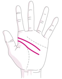 知能線は1本の人が多いのですが、まれに2本の知能線がくっきりと現れる人がいます。この相を持っている人の最大の特徴は、2つの頭脳や才能の持ち主であるという点です。2つの異なった考え方や行動ができることから、周りから個性的で行動が読めない人と思われますが、貴方にしかできない多方面での活躍、同時に複数の仕事をできるなどの才能がありますので、ぜひ理解されなくてもチャレンジし続けてみて下さいね!