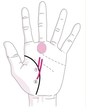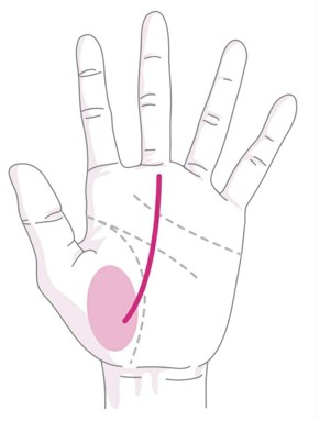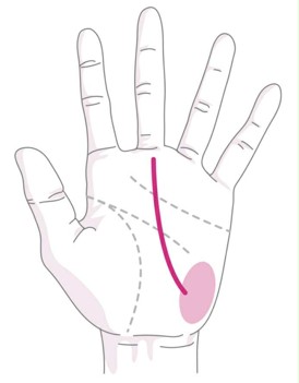 親指の下のほうに位置する金星丘または、生命線下部のほうから上昇する運命線は、「跡継ぎの相」と呼ばれています。身内、家族との縁が深く、その深い関係性で運が開かれていきます。親の仕事を受け継いだり、親からの資金援助で事業を興したり、財産を相続したりする可能性が高いでしょう。