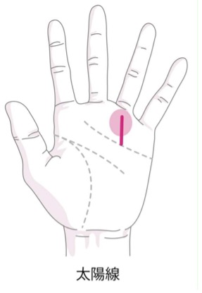 薬指の下部にある太陽丘に現れる太陽線は、金運も良く成功運と言えます。この線がしっかりと勢いよく刻まれている場合は、金運が特に良好で幸せや成功が舞い込んでくることを示します。